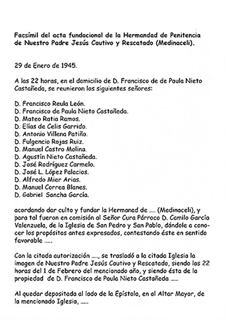 - 29 de enero de 1945. Se funda la Hermandad de Nuestro Padre Jesús Cautivo y Rescatado.